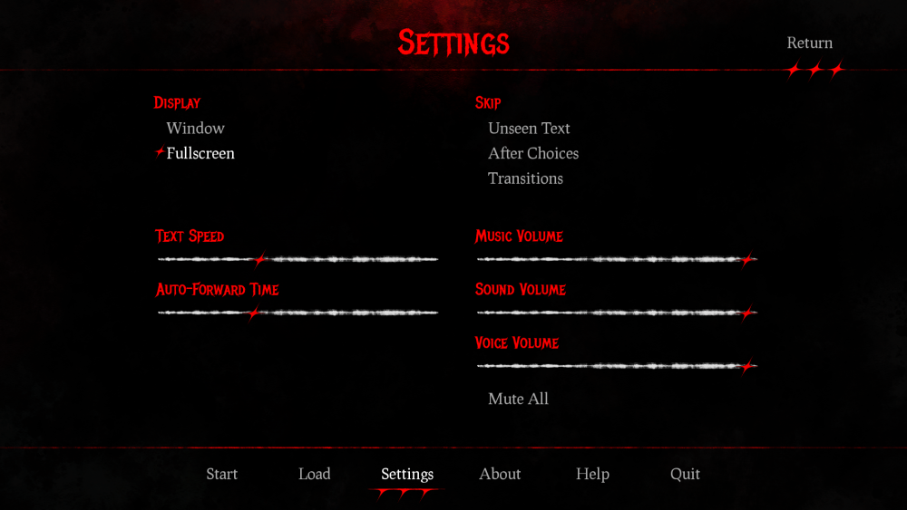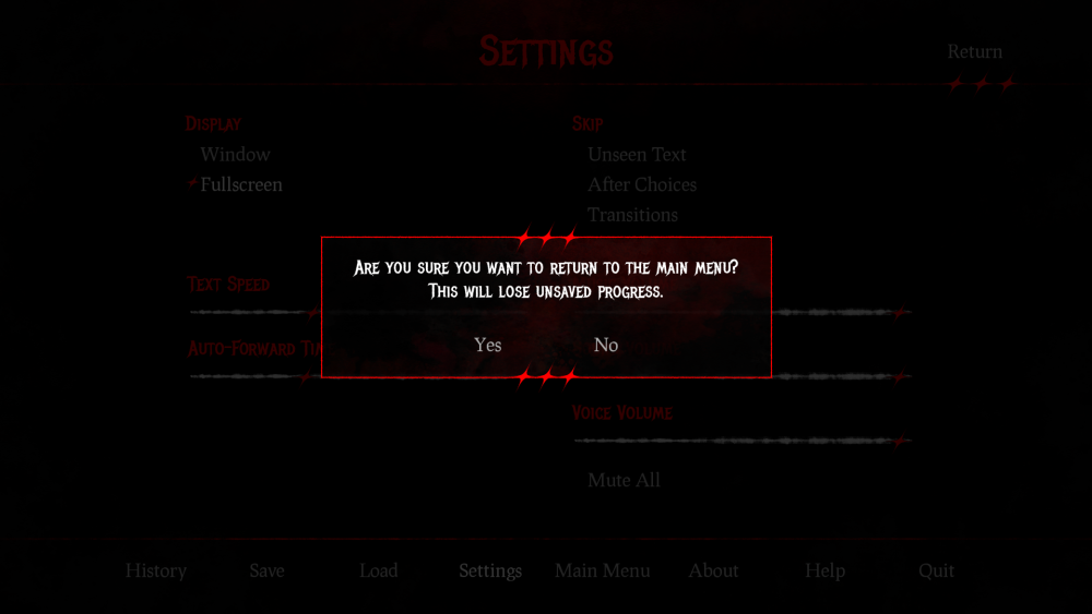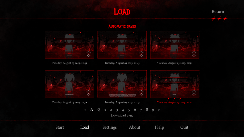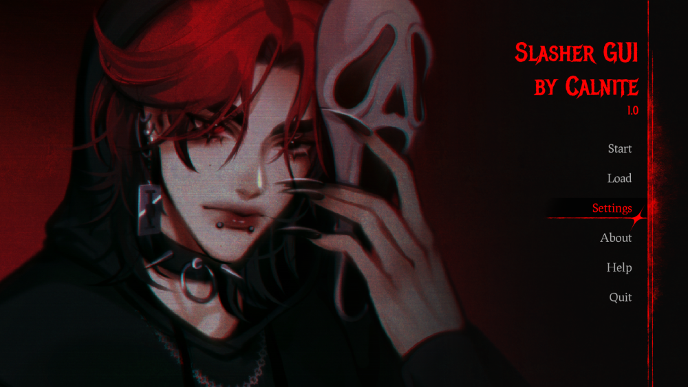 A fully customized GUI designed for Ren'Py visual novels, inspired by slasher and horror aesthetics.